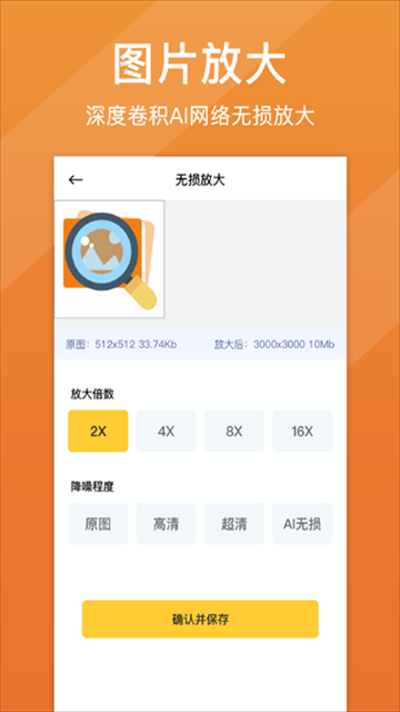 1.【图片放大】采用深度卷积AI网络,实现无损放大,补充噪点和锯齿。