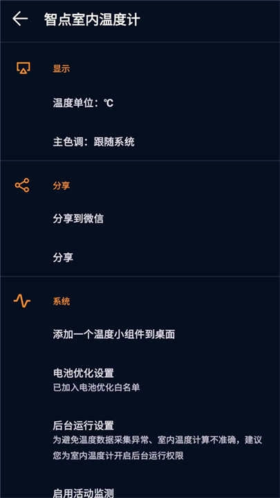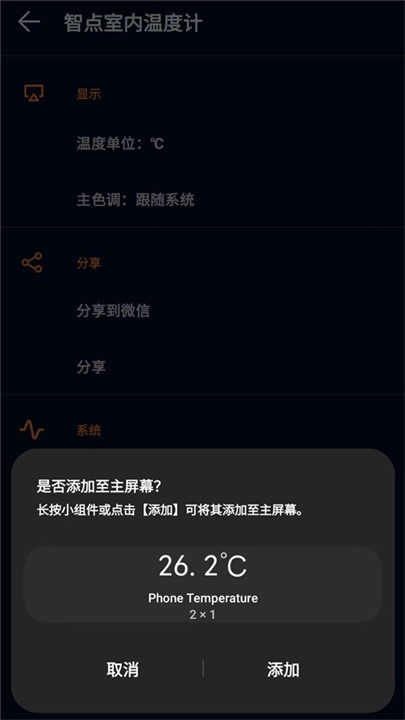 室内温度计是一款室内温度测量软件,室内温度计可以精确的测量出室内白天和夜间的最高温度和最底温度,支持亮白、炫黑以及自动3种主题模式选择,非常合适对温度有严格要求的场景使用,比如蔬菜种种植或者植物养殖都是需要对温度有一定把控的,有了室内温度计手机版帮助我们就不用担心温度把控不好了。