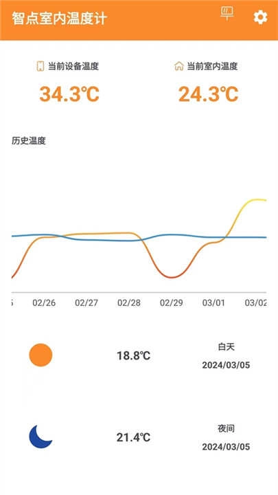 2.室内温度计会自动收集并展示详细的温度数据,方便随时查看。