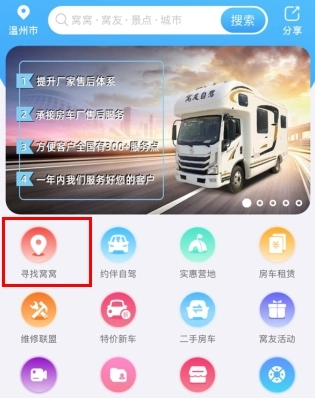 轻松找到适合房车、拖挂、帐篷的位置,提供完善设施,窝友之家是您的生活管家。