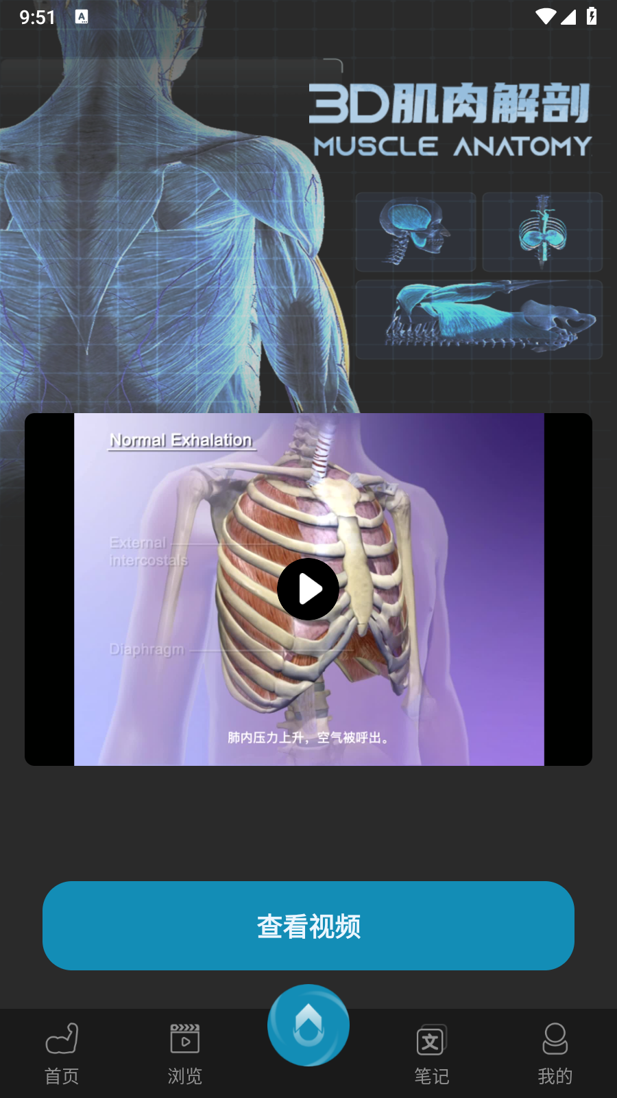 1. 高品质3D视频:应用内的视频课程运用高品质3D动画技术,对真实解剖场景进行模拟,让用户可以更直观地认识肌肉的结构与功能。