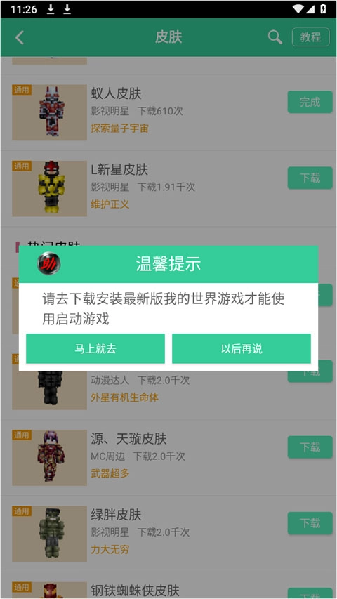 3、完成后即可应用皮肤,若未安装游戏请先游戏。
