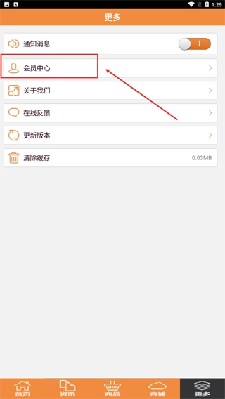1、进入“更多”页面后,点击【会员中心】选项,跳转至登录注册界面完成账号注册操作。
