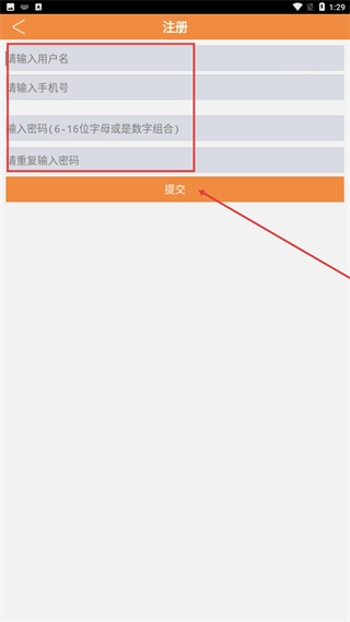 3、进入注册页面后,请按顺序填写【用户名】【手机号】【密码】【重复密码】这几项信息,全部填写完毕后,点击【提交】按钮即可完成注册流程。