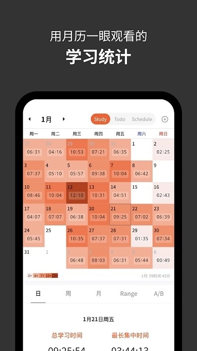 3、学习日历:具备专业的学习日历功能,用户能够便捷地查看每日及每周的学习时长。