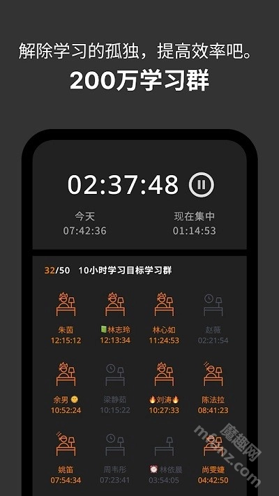 1、小组功能:用户能够创建学习小组,即时掌握学习成员的状态,助力彼此监督与激励。
