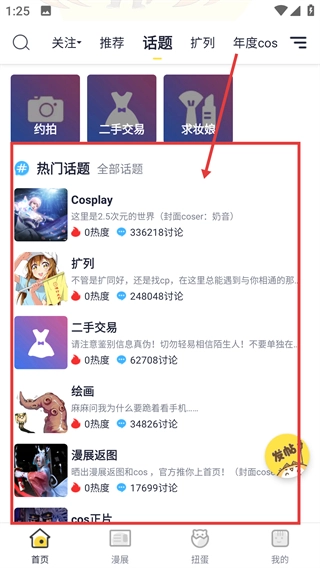 2、进入话题页面后能看到【热门话题】列表,选择感兴趣的话题点击进入,就能查看该话题下的内容哦。