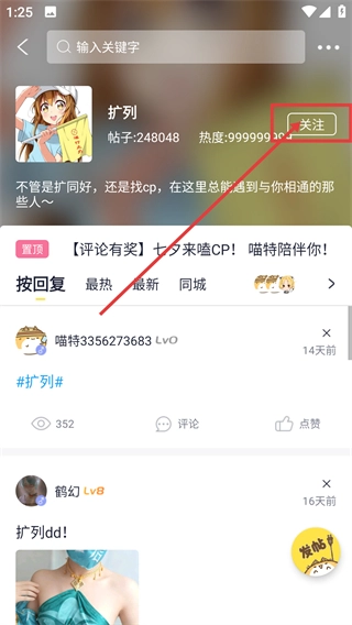 3、进入目标话题页后点击右上角的【关注】按钮,就能关注该话题,后续可及时收到话题的更新动态啦。