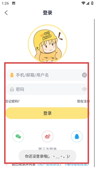 4、若未登录会跳转到登录页,可填写【手机/邮箱/用户名】和密码,或选第三方账号完成登录操作哦。