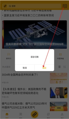 若用户需要切换语言,可点击首页右上角的“pyc”图标,以此实现中俄双语的相互切换。