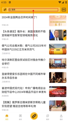 要是没找到自己想看的新闻,用户可以在首页点击顶部的搜索框,搜索自己想查看的中俄新闻。
