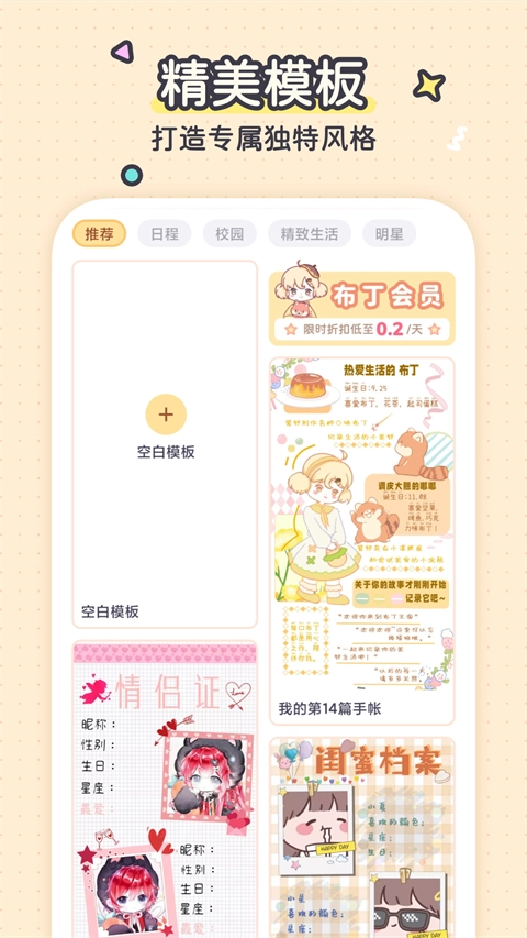 5、平台准备了多样的手账模板,我们能够依据自身需求挑选合适的模板来使用。