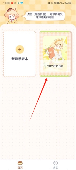 3、返回首页后,点击自己刚刚创建的手账本。