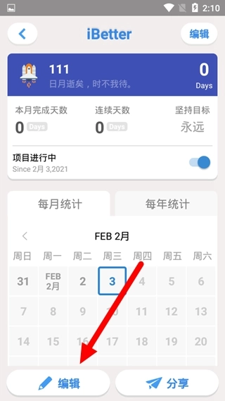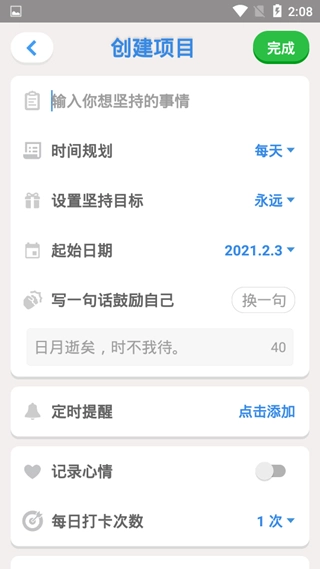 项目可开启「给自己打分」功能,量化每一次打卡