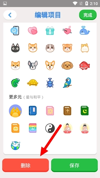 3、在编辑项目界面中将其拖动到最下面,点击“删除”按钮即可。