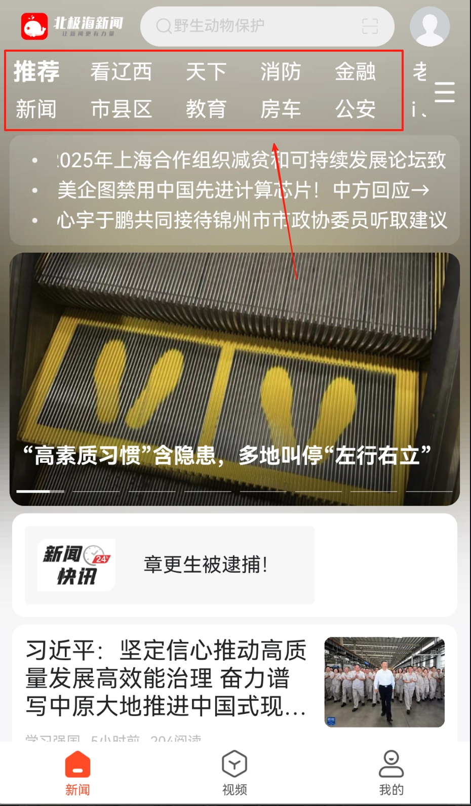 1、在首页滑动浏览系统推荐的即时新闻,并且点击频道标签可切换不同领域资讯分类。