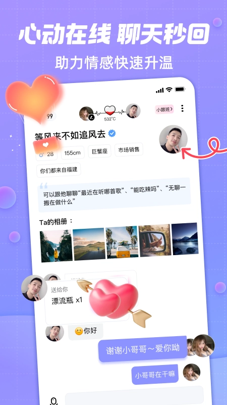 4、安全合规运营:严格遵守网络社交平台规范,配备24小时人工审核与举报处理机制,守护健康社交生态。