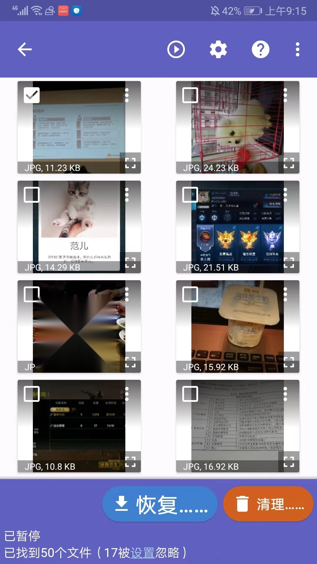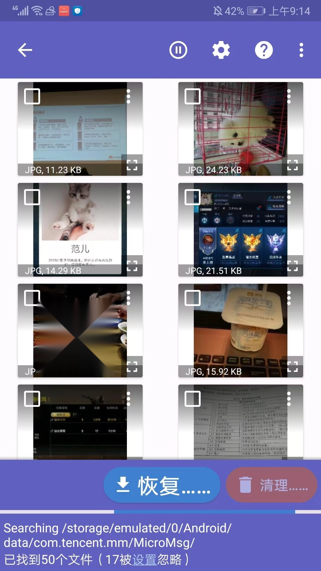 3. 扫描时可随时点击“暂停”,接着勾选想要恢复的照片。