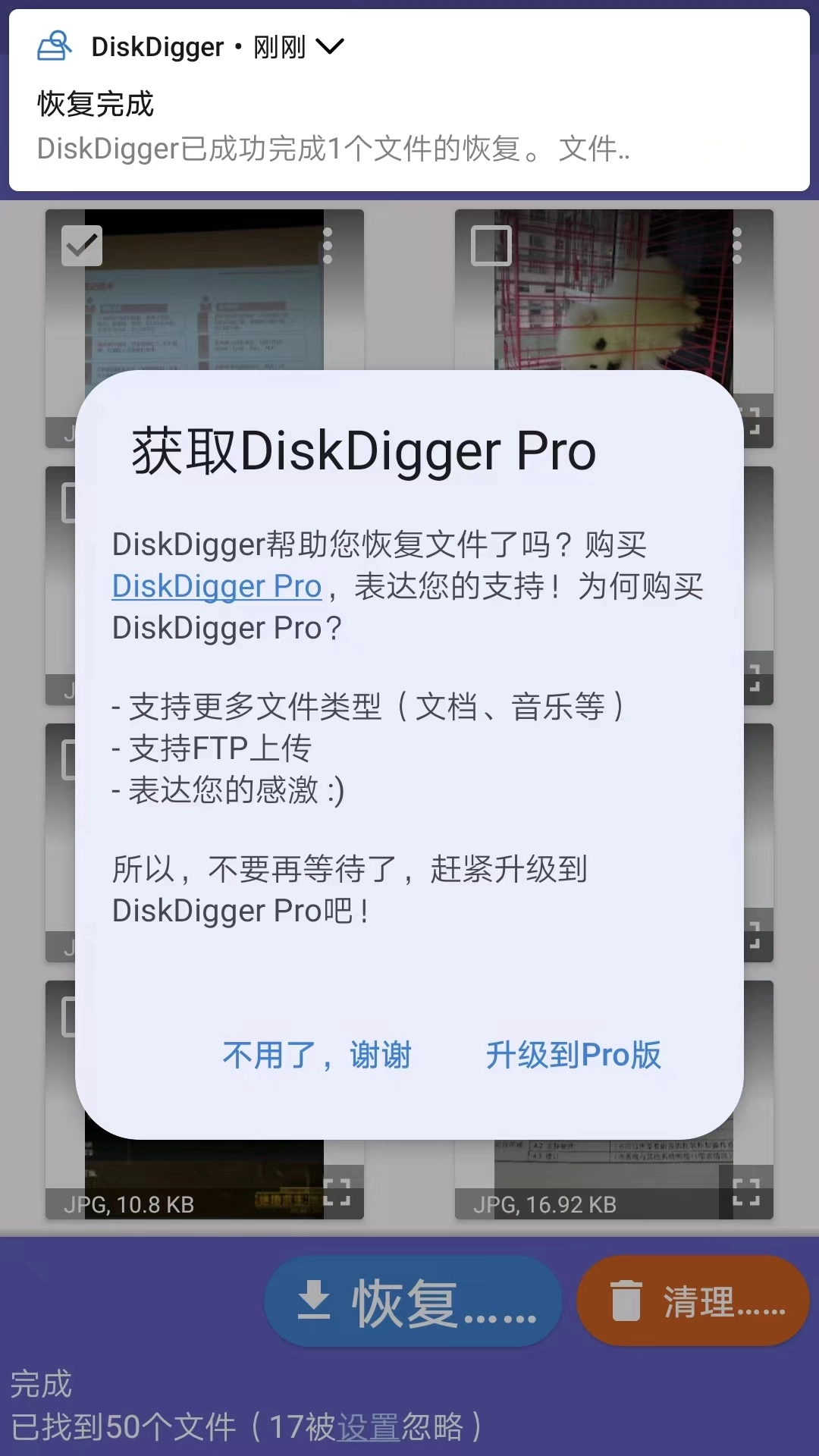 在屏幕的上方,我们能够看到“照片恢复成功”这样的提示。