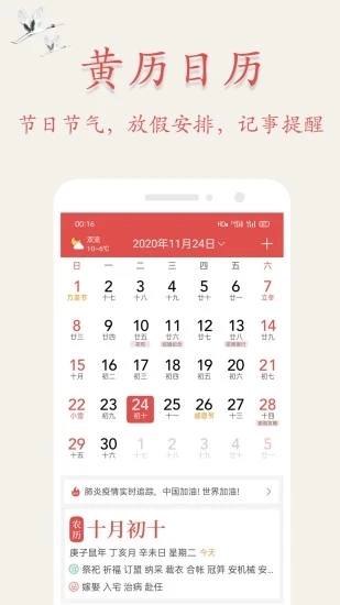 全方位生活信息,天气预报、车辆限行、星座运势、黄历宜忌;