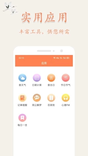 黄历:涵盖完整的传统黄历内容,清晰呈现农历节气的更替,每日的适宜与禁忌事项,吉神与凶神方位,天干地支及五行属性,还同步展示公历、农历等多种历法形式。