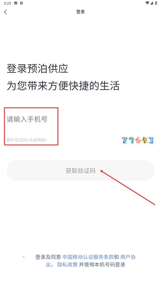 2、进入登录页,先在【请输入手机号】填写号码,再填写图片验证码,完成信息填写后,点击【获取验证码】完成登录。