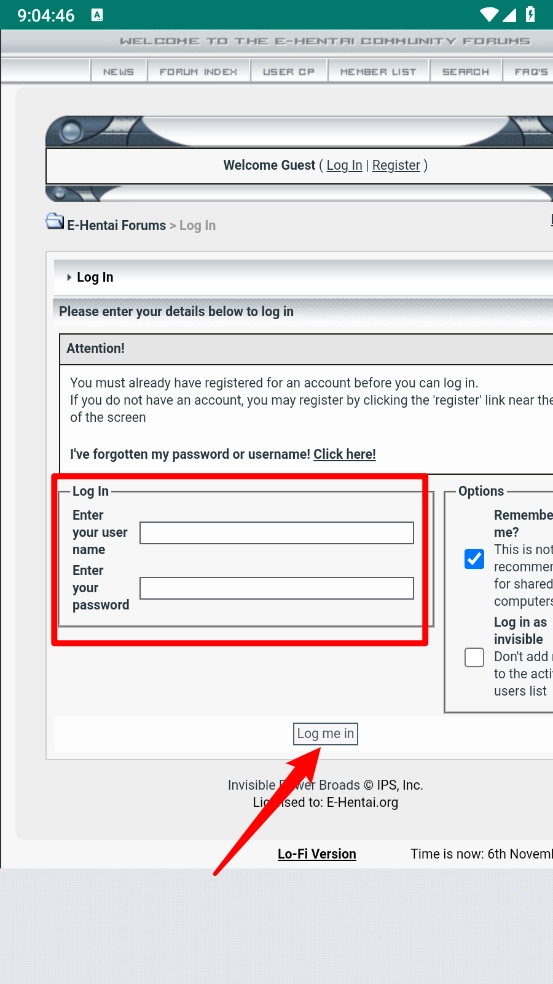 3、进入后输入个人姓名和密码,点击“Log me in”按钮完成登录,操作界面如图所示。