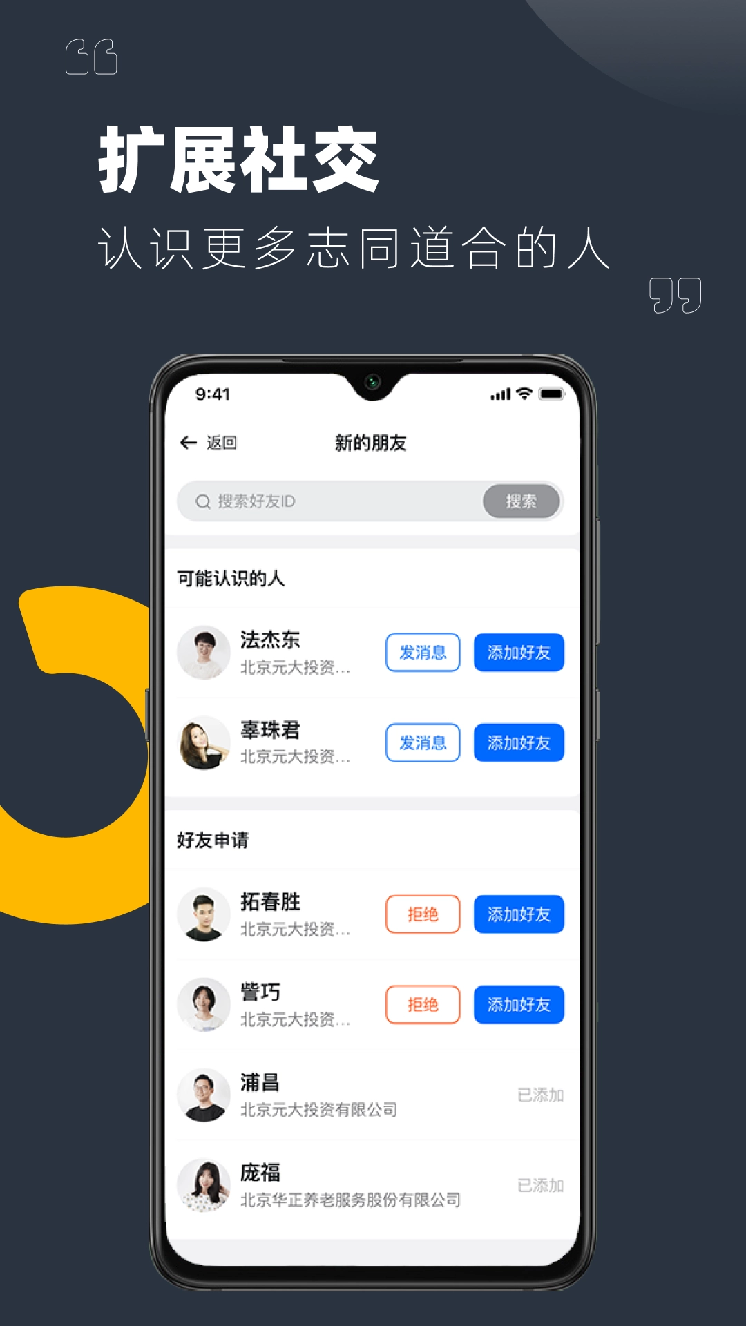 3. 探索功能:在应用的首页,用户能够浏览到系统推荐的好友、社群以及活动。当遇到感兴趣的内容时,点击即可查看其详细信息,并且可以选择进行互动操作,比如发送好友请求、加入社群或者报名参与活动等。