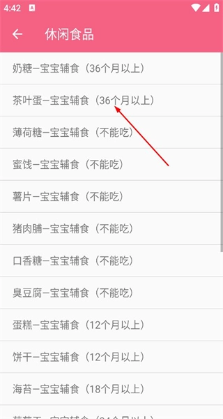 3、进入休闲食品页面,看到多款宝宝辅食相关食品,选择其中一款食品并点击。