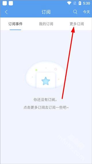 3、进入订阅栏目后,可查看订阅事件与我的订阅,点击“更多订阅”选项。