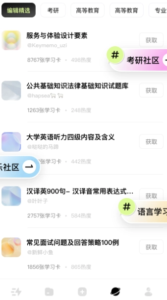 1. 以闪卡作为核心内容载体,每张卡片承载的内容简洁凝练,有助于记忆,能让用户借助碎片化时间进行学习,提升学习效率。平台配备七种学习模式,用户可依据自身学习习惯与知识掌握程度灵活选用,实现学、练、测、评各环节的有机衔接。