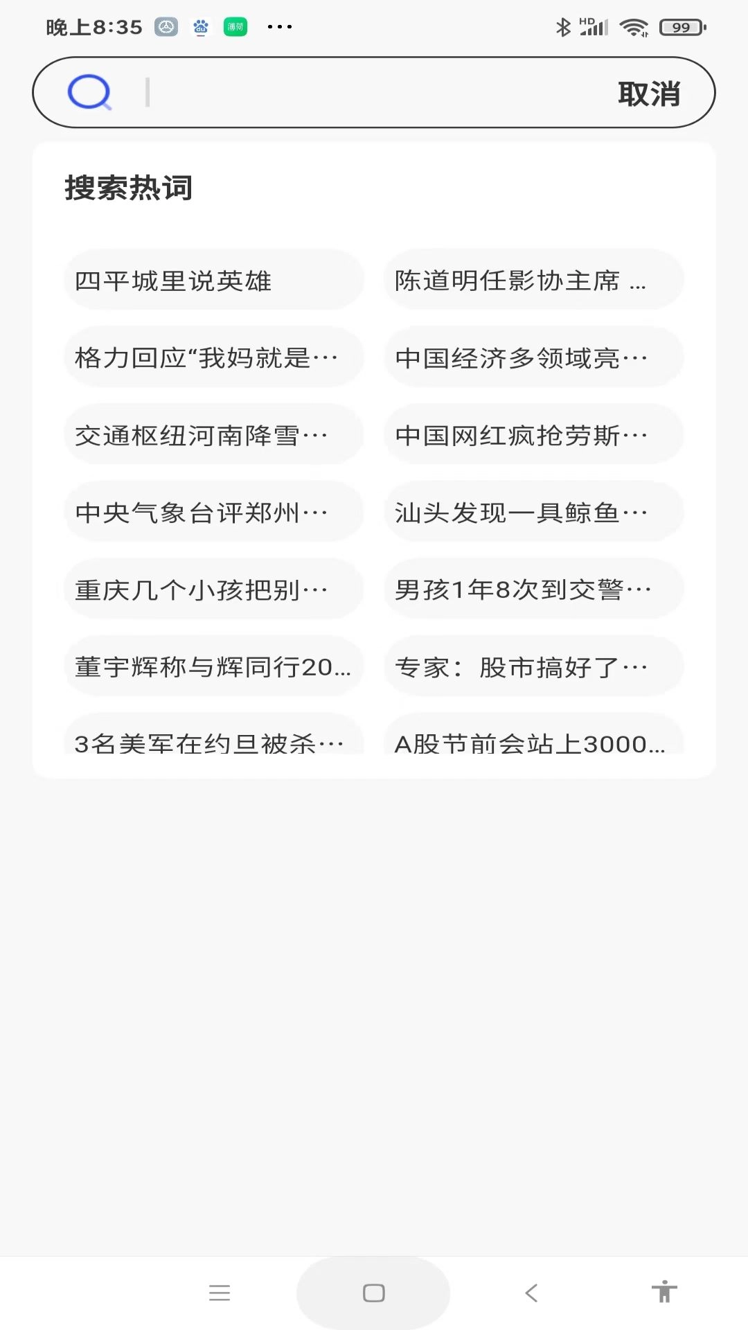 点击顶部的搜索框就能进入搜索模式,浏览器也会显示当下的热门搜索词,便于用户迅速知晓热点内容。