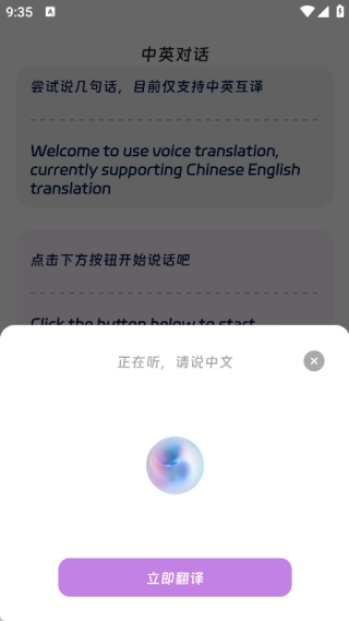 4、点击“中文”选项,待语音输入完成后,即可点击“立即翻译”按钮执行翻译操作。