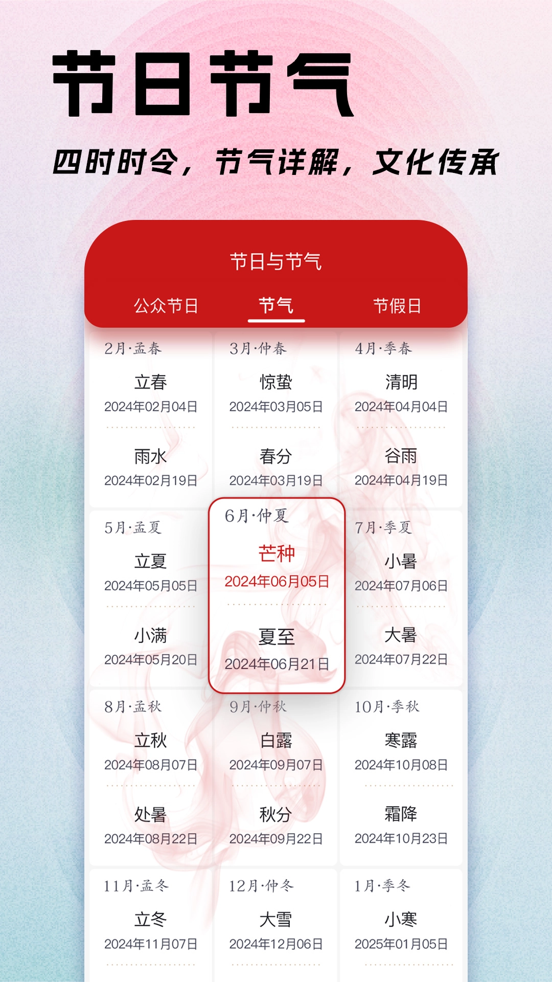 这款软件集成了多项实用功能,用户只需简单操作,就能查看当日及未来日期的详尽信息。它支持农历与阳历的自由切换,可便捷查询指定日期对应的农历详情。天气预报模块能提供7天的天气趋势,助力用户提前掌握天气变化,更合理地规划日程安排。事项提醒功能允许用户为重要事件设置提醒,有效避免错过关键节点。此外,软件还呈现了节气变换的详细内容,帮助用户深入了解传统节气的文化意义与相关习俗,丰富日常生活的文化底蕴。星座查询功能则为用户提供个性化的星座运势解读,增添了使用过程中的趣味性。