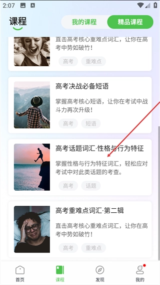 1、点击底部“课程”按钮,可进入课程列表页面。
