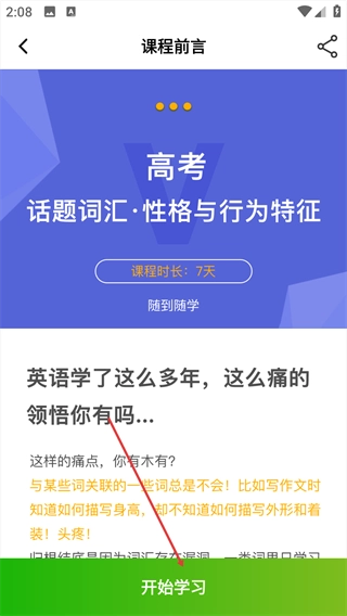 3、点击“开始学习”按钮,即可进入课程的学习流程。