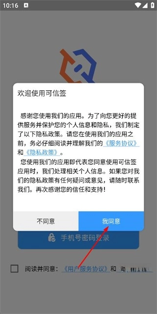 1、在使用协议和隐私政策弹窗里点击“我同意”按钮,即可进入登录选择页面。