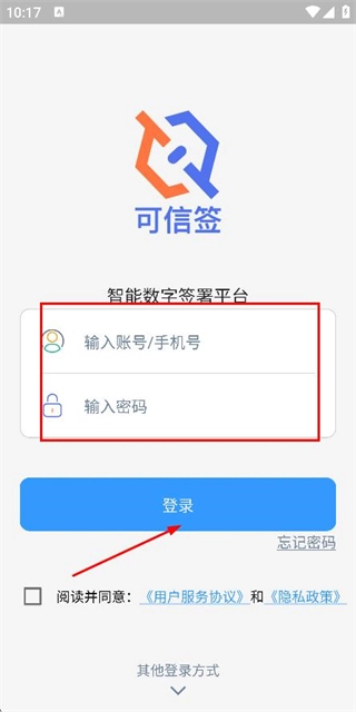 3、在手机端的登录界面中,输入对应的手机号与密码,勾选相关协议条款后,点击登录按钮,即可完成账号的登录流程。