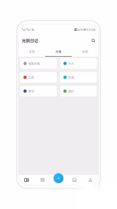 可以划分旅行、心情、工作、生活等不同类型日记;
