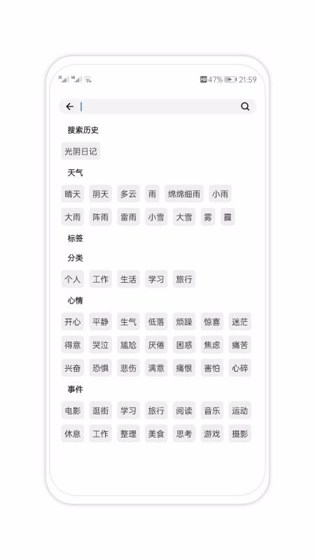标签管理功能:支持为日记添加多个标签与事件,让回顾查询和日常管理更便捷,操作方式也十分简单。
