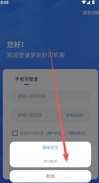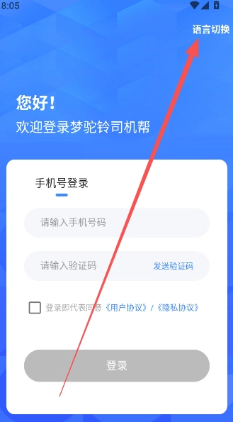 2、接着进入用户登录界面,点击顶部的语言切换按钮。