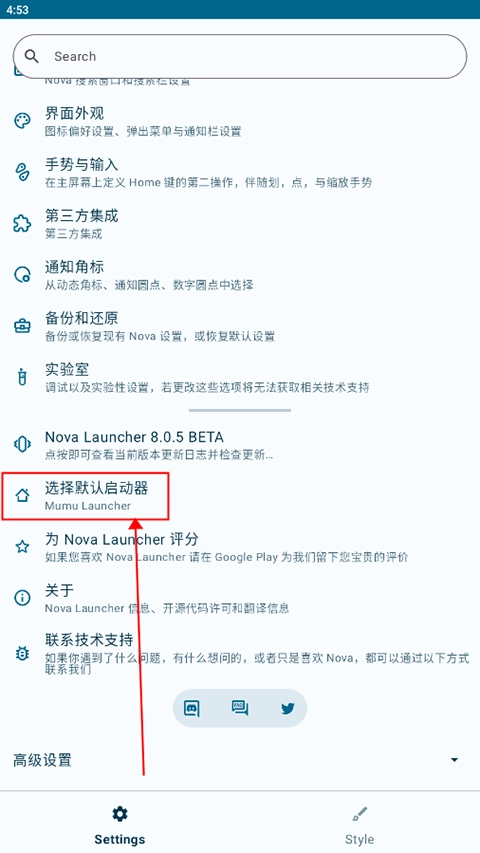 1、打开,在设置页面下滑点击“选择默认启动器”;