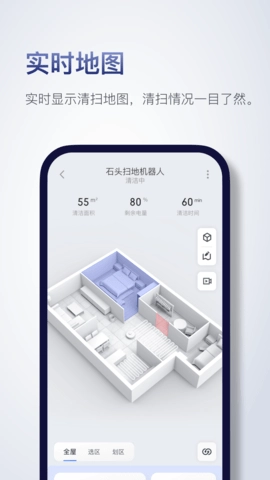 Roborock是北京石头世纪科技股份有限公司推出的智能家居控制产品,主要适配石头扫地机器人。它能够依据家庭环境进行地图的个性化编辑,可设置地面材质、家具布局、房间命名以及清洁次序等信息,还支持虚拟墙与禁区的设定,以此保证机器人在清扫过程中不会跨越界限或进入禁止区域。