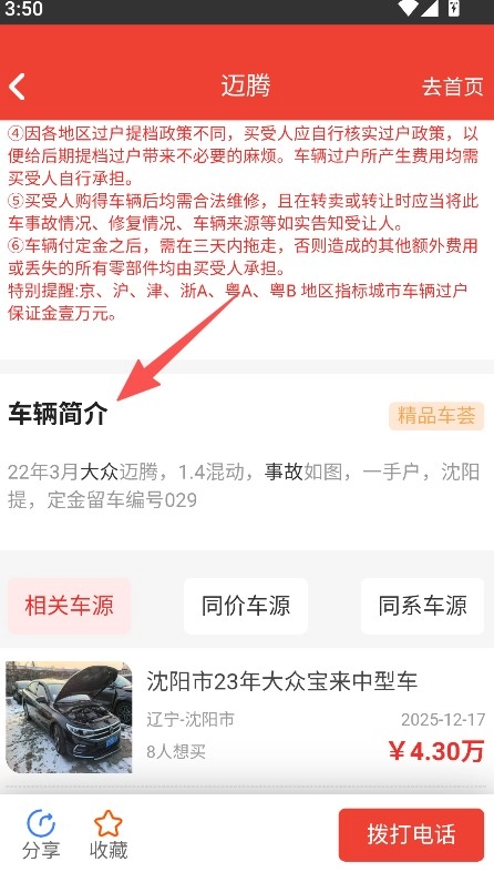 2、从事故车列表里挑选出目标车辆,进入该车辆的详情页面。