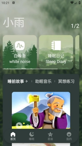 进入平台首页后,您可以点击使用白噪音、睡眠日记等功能,也能聆听睡前故事。