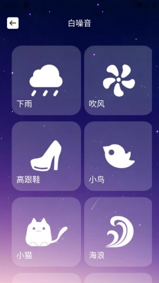 2、点击白噪音选项,这里的各类素材都可免费挑选,聆听之后,能让人的心境变得更为平和。