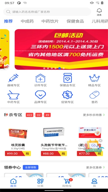 浏览选购:可在首页或分类页面浏览各类药品与医疗器械,也能借助搜索功能查找特定药品。