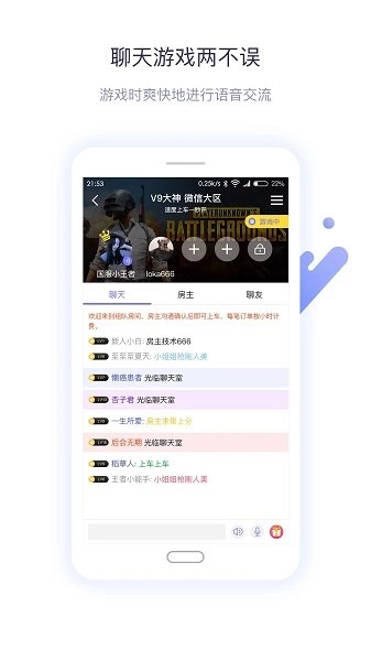 组队功能:您可以在组队列表中筛选自己想玩的游戏,加入房间后与大神开始沟通并在支付点券后与大神一起开始一场游戏;