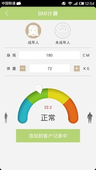 3. 客户管理功能:支持用户对个人及客户的身体健康情况进行建档与监测,方便营养师进行健康管理服务。