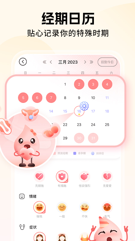 4. 便捷易用:姨妈小日历界面简洁、操作便捷,方便女性随时随地记录和管理自己的生理健康数据。